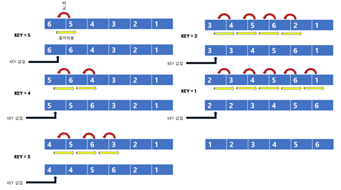 - ํ์ฌ Key ์์ ์์นํ๋ ๋ฐ์ดํฐ๋ค์ ์ด๋ฏธ ์ ๋ ฌ๋ ๋ฐ์ดํฐ๋ค์ด๋ฉฐ, ์ ๋ ฌ์ด ์๋ฃ๋ ๋ฐ์ดํฐ๋ค ์ฌ์ด์ Key์ ์์น๋ฅผ ์ฐพ๋ ๊ฒ์ด ์ฝ์ ์ ๋ ฌ์ด๋ค.