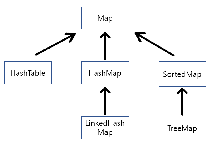 Map ์ธํฐํ์ด์ค๋ key์ value๋ฅผ ํ๋์ ์์ผ๋ก ๋ฌถ์ด์ ์ ์ฅํ๋ ์ปฌ๋ ์ ํด๋์ค๋ฅผ ๊ตฌํํ๋ ๋ฐ ์ฌ์ฉ๋ฉ๋๋ค. key๋ ์ค๋ณต๋ ์ ์์ง๋ง value๋ ์ค๋ณต์ ํ์ฉํฉ๋๋ค. ๊ธฐ์กด์ ์ ์ฅ๋ ๋ฐ์ดํฐ์ ์ค๋ณต๋ key์ value๋ฅผ ์ ์ฅํ๋ฉด, ๊ธฐ์กด์ value๋ ์์ด์ง๊ณ ๋ง์ง๋ง์ ์ ์ฅ๋ value๊ฐ ๋จ๊ฒจ์ง๊ฒ ๋ฉ๋๋ค. Map ์ธํฐํ์ด์ค๋ฅผ ๊ตฌํํ ํด๋์ค๋ก๋ Hashtable, HashMap, LinkedHashMap, SortedMap, TreeMap ๋ฑ์ด ์์ต๋๋ค.