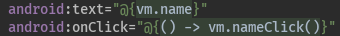 xml μμμ κ²°ν©μ μν λ³μλ₯Ό λ°μΈλ© ν΄μ€ ν, λ€μκ³Ό κ°μ΄ UI ꡬμ±μμμ λ°μ΄ν°μμ€λ₯Ό κ²°ν©μν¬ μ μμ΅λλ€.